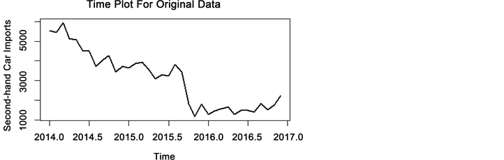 Figure 2. Time plot for imported second-hand cars in Zambia from Jan 2014 to Dec 2016.