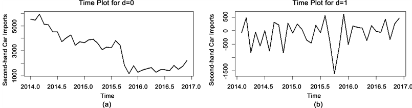 Figure 4. Time Plot of undifferenced and differenced time series data. (a) Undifferenced time series plot; (b) First difference time series plot.